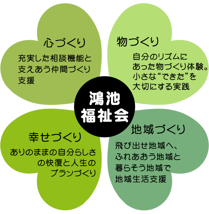 鴻池福祉会は『心づくり』『物づくり』『幸せづくり』『地域づくり』の